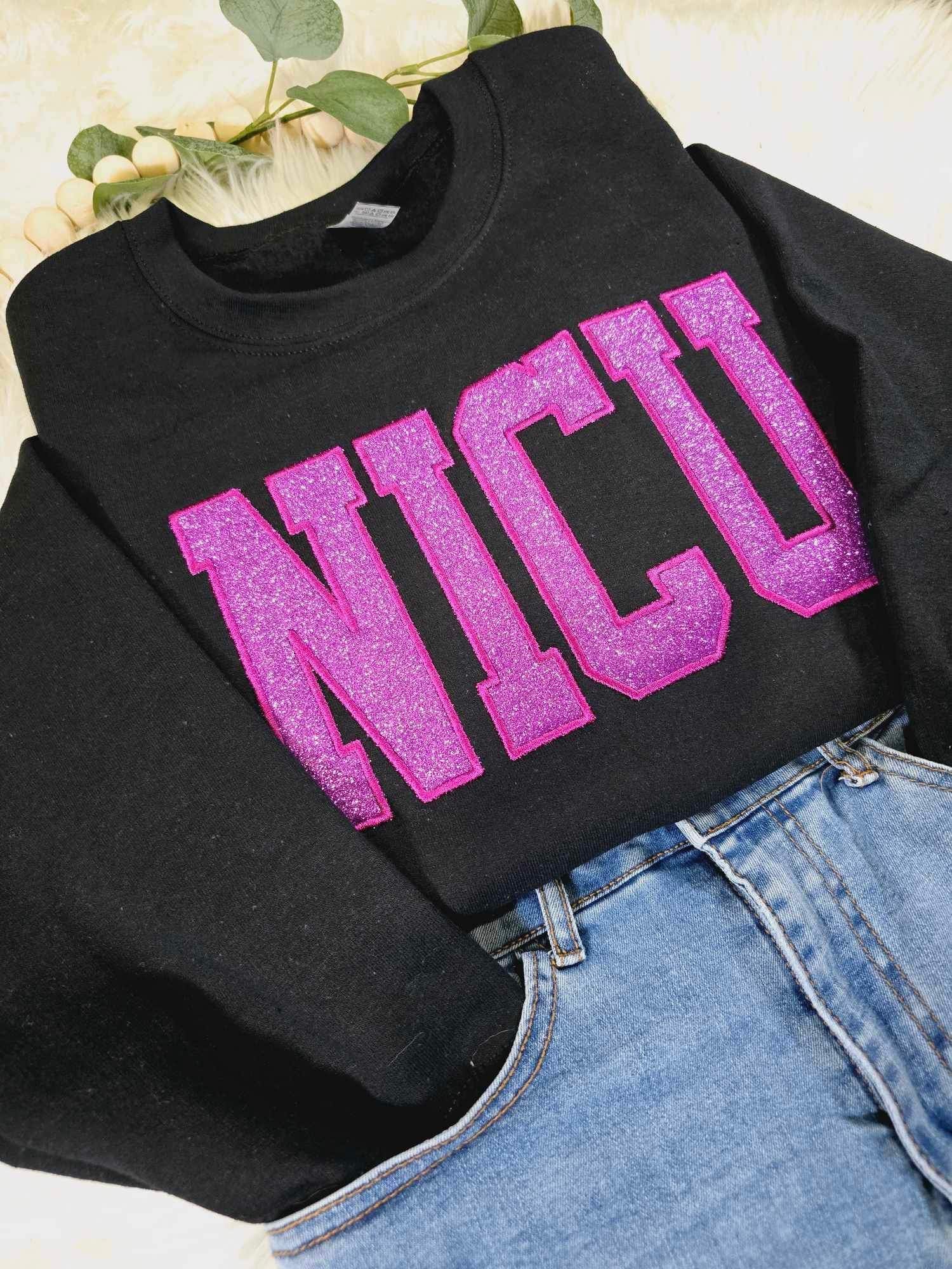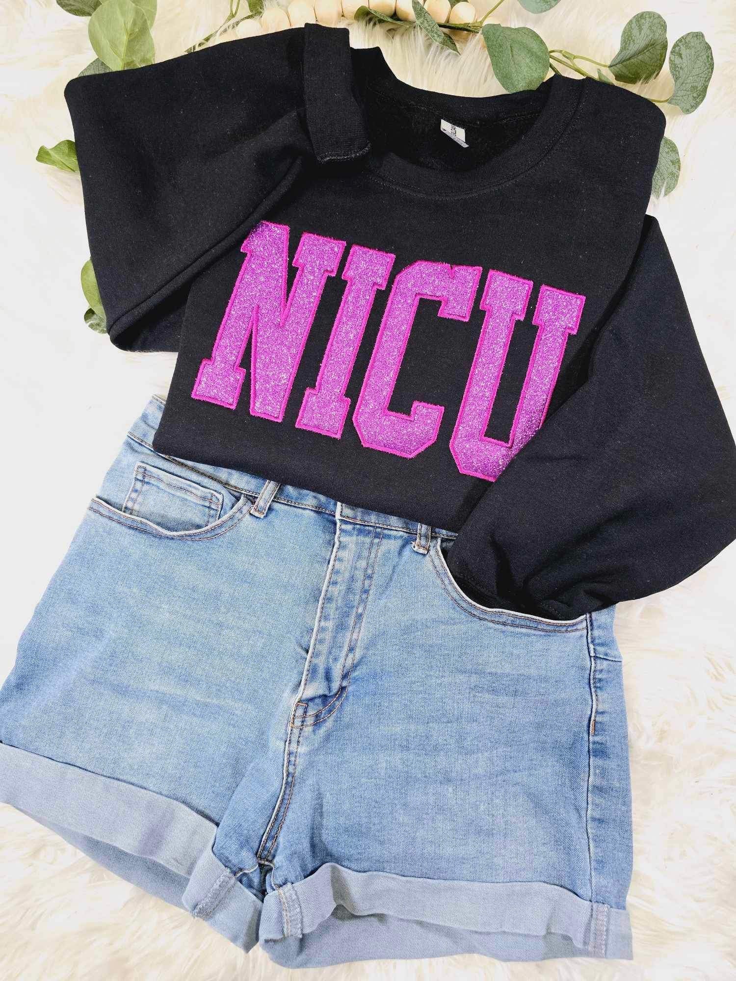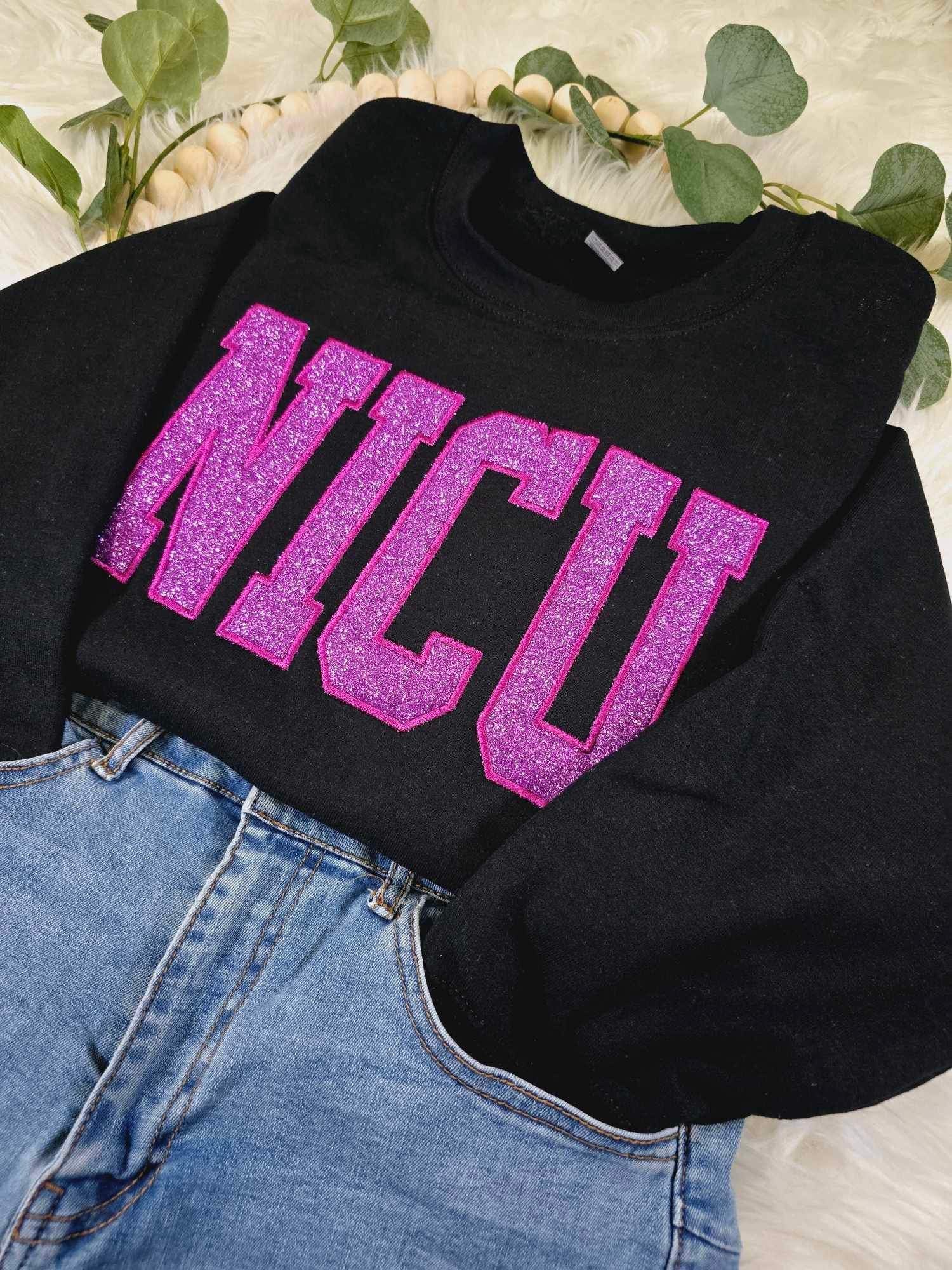 Cute Apparel, Embroidered Crewneck, Nurse, Nursing Student, Future Nurse, Crewneck, Gift, Sweatshirt, NICU Crewneck in Black
