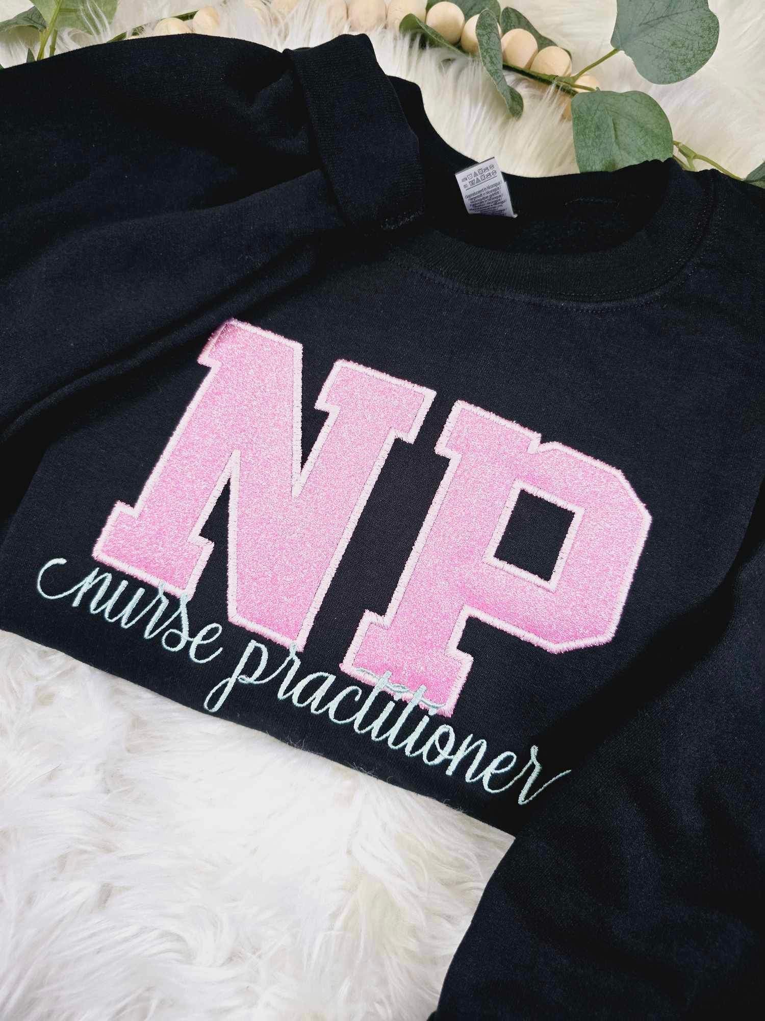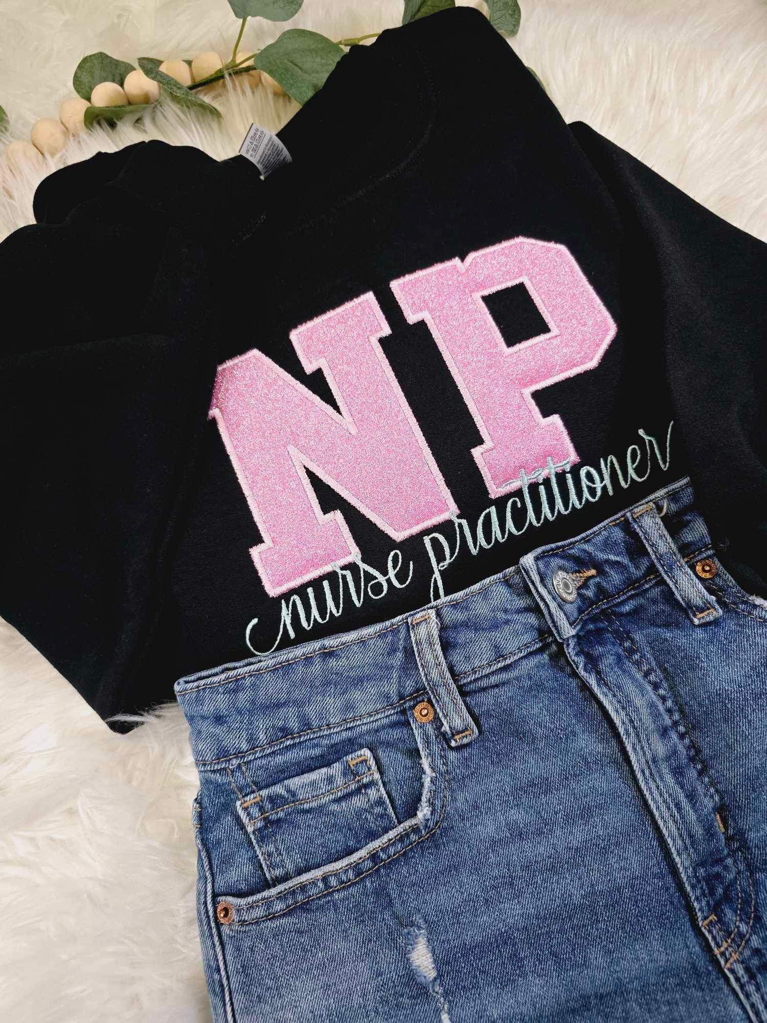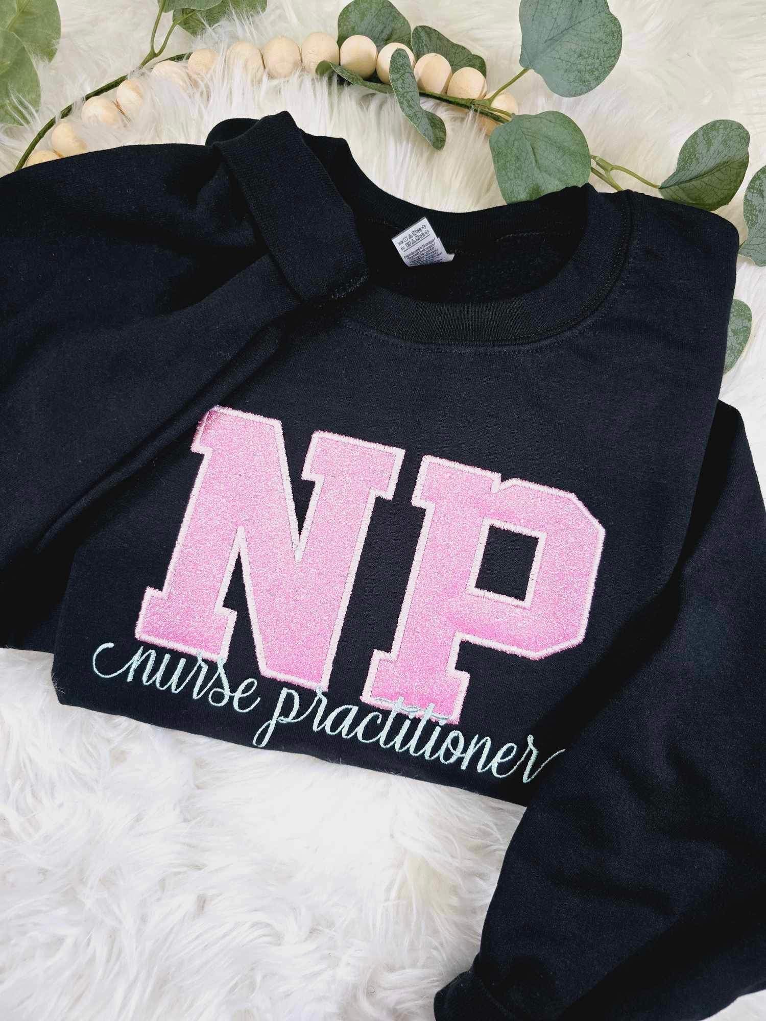 This beautifully embroidered sweatshirt is the perfect gift for the NP in your life. It is perfect for the any casual setting. Made with high quality embroidery, each intricate detail is highlighted on the unisex sweatshirt. Crafted with pre-shrunk air-jet spun yarn, the crew neck sweatshirt features double-needle stitching for added durability. It features high sparkle glitter HTV. The loose fit ensures comfort, while the 50% cotton and 50% polyester fabrication makes it easy to care for.