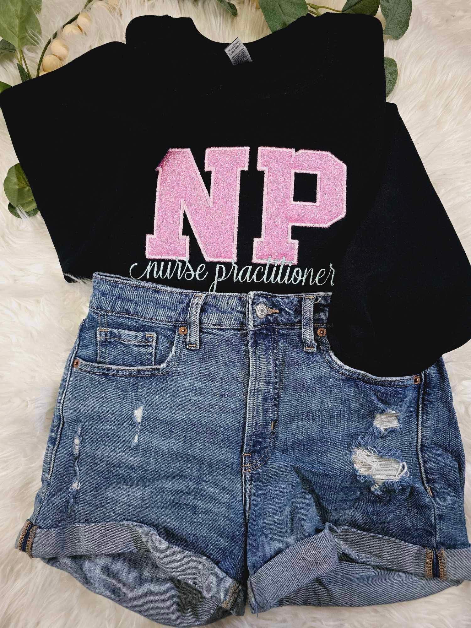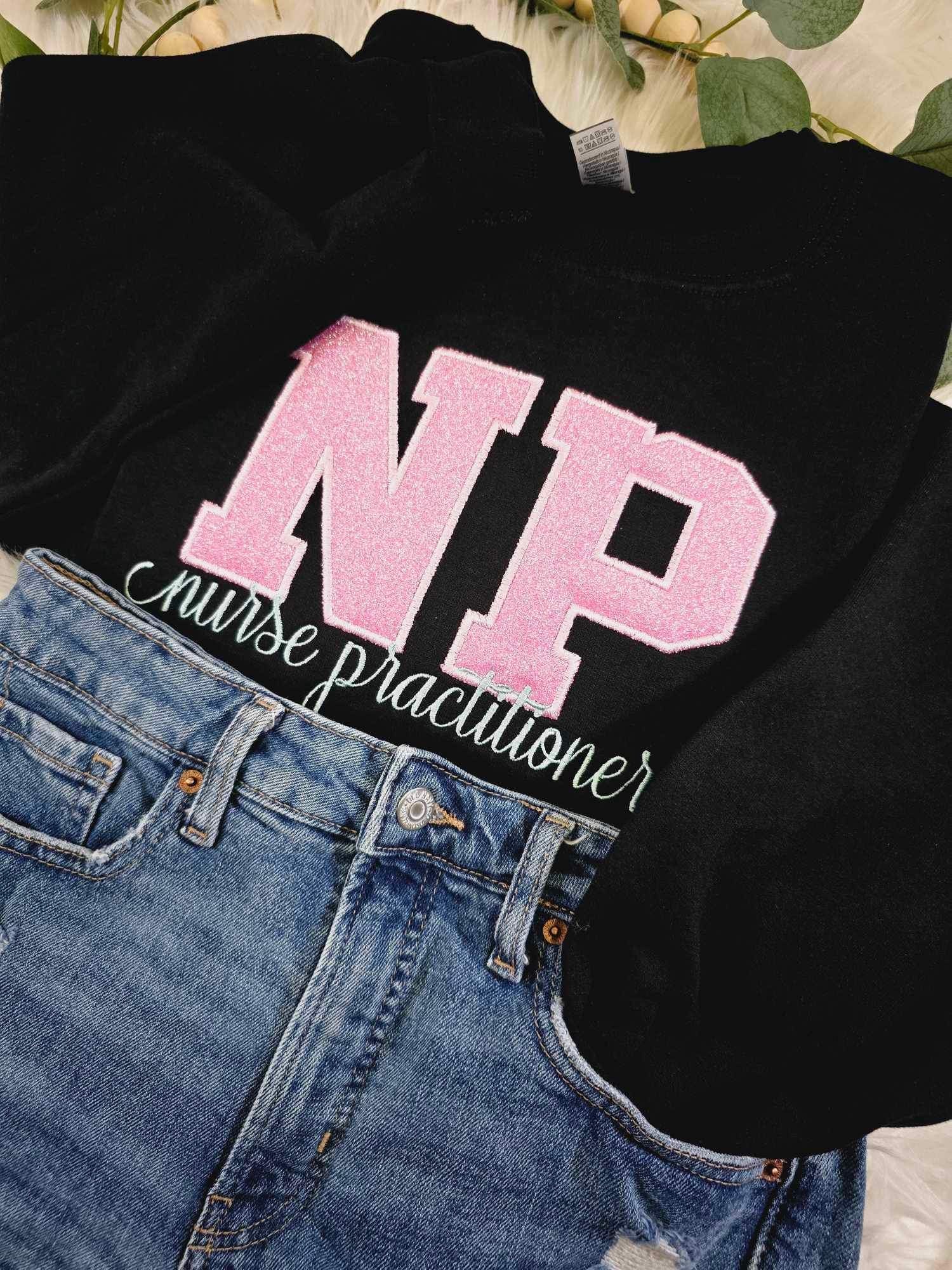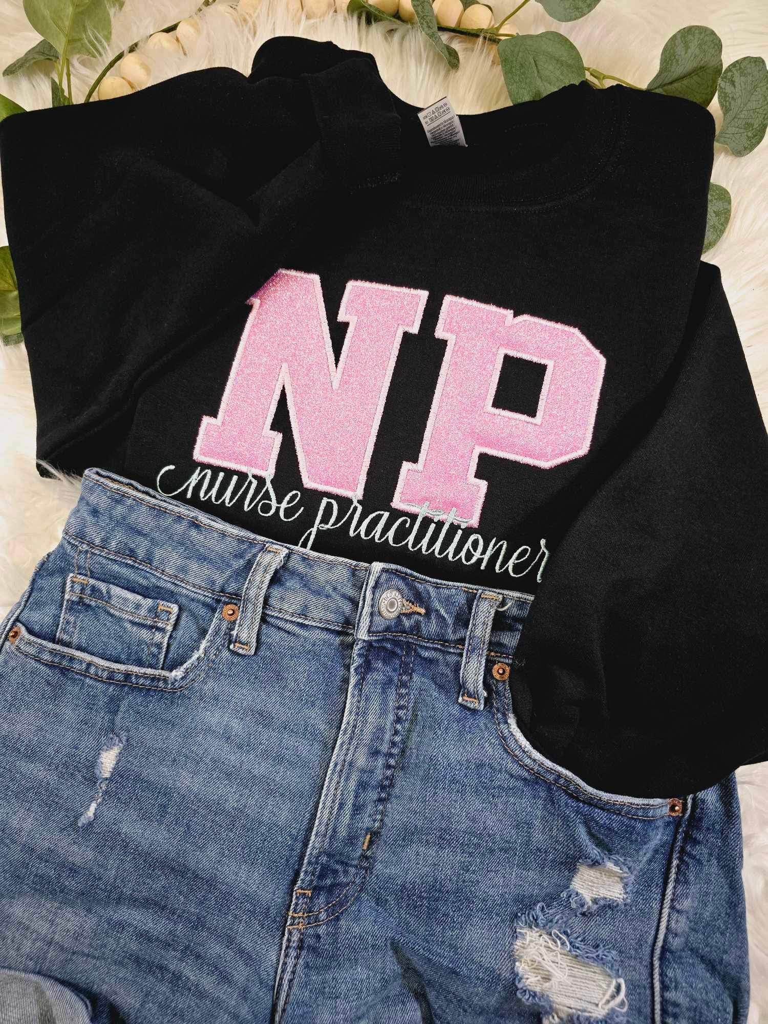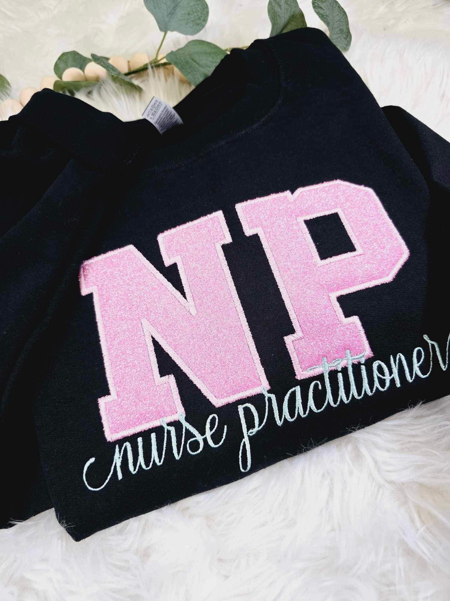 This beautifully embroidered sweatshirt is the perfect gift for the NP in your life. It is perfect for the any casual setting. Made with high quality embroidery, each intricate detail is highlighted on the unisex sweatshirt. Crafted with pre-shrunk air-jet spun yarn, the crew neck sweatshirt features double-needle stitching for added durability. It features high sparkle glitter HTV. The loose fit ensures comfort, while the 50% cotton and 50% polyester fabrication makes it easy to care for.